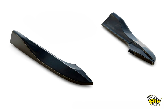 Под пороги устанавливаются сплиттеры, которые имеют небольшие закрылки в задней части, такие же, как по бокам губы переднего бампера.