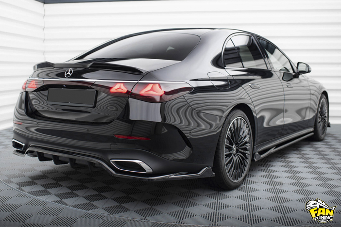 Совсем новый Мерседес (Mercedes) Е классе в кузове W214 и я рад предложить на него первый тюнинг. Этот обвес подойдет на автомобили в АМГ пакете (AMG Line). Обовес изготовлен в Европе из высококачественного АБС-пластика и имеет отличную геометрию, благодаря которой подгонка не требуется. Обвес поставляется уже окрашенным в черный глянец и устанавливается на автомобиль в течении одного рабочего дня.