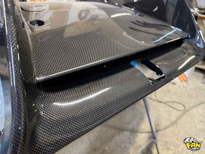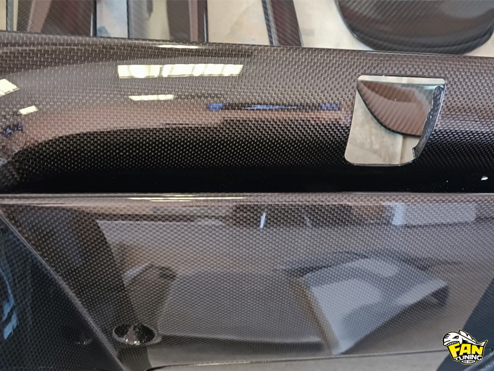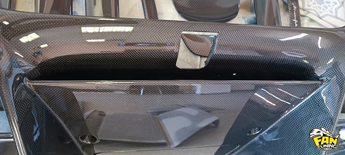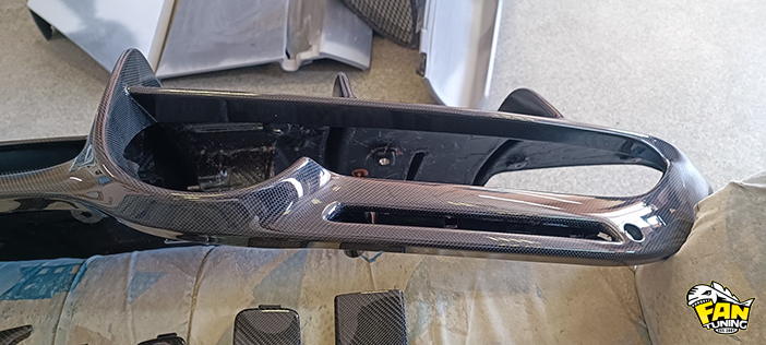 Приехали к нам в работу две детали из карбона на Феррари (Ferrari) F8 Tributo - это накладка на порог и диффузор заднего бампера Новитек (Novitec). Повреждения были достаточно неприятные и мы сначала отремонтировали детали, а пото заламинировали их новым карбоном. Причем порог полностью заламинировали, а на диффузоре только те части, которые были повреждены до швов на карбоновом волокне. После ремонтане видно, что эти детали когда-либо были сломаны, всё как по заводу.