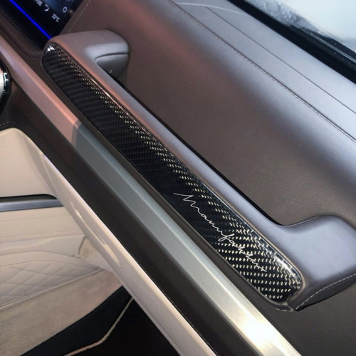 Мы всегда держим в наличии детали салона в карбоновом исполнении на Мерседес (Mercedes) G W463a (W464). Кстати, на W465 также в наличии карбоновый салон. Так вот, этот стайлинг салона получается очень быстрым благодаря готовым деталям в наличии. В принципе, вы заезжаете к нам на авто с джеревянным салоном и через несколько часов, в этот же день, выезжаете с карбоновым салоном. Все детали оригинальные мерседесовские, заламинированные нами в настоящий карбон. Ваши снятые детали мы оставляем у себя, ламинируем их и устанавливаем следующему заказчику. При таком тюнинге меняются 10 деталей: 4 вставки в двери, крышка пепельницы, окантовка селектора КПП, 3 детали под приборной панелью и накладка ручки на торпедо справа. Причем эта накладка будет с надписью Manufaktur.