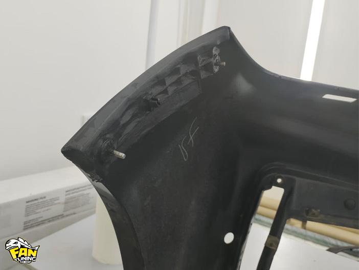 Ну и боковые крепежи мы полностью сделали своими, теперь бампер не защелкивается на ненадежные и быстро изнашиваемые защелки. Теперь бампер прикручивается на болты, это надежно, долговечно и в любом сервисе теперь смогут спокойно снять и поставить на место этот тюнингованный бампер, в случае необходимости.